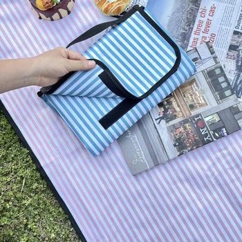 Outdoor Beach Ultrasonic Picnic Blanket Waterproof and Moisture-proof Rug Machine Washable Oxford Picnic Mat with Cotton Handle