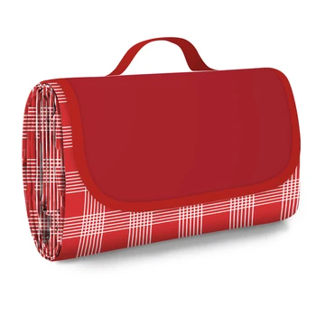 Indoor Outdoor Portable Foldable Custom Waterproof Picnic Blanket Beach Mat Picnic Rug with Cotton Handle